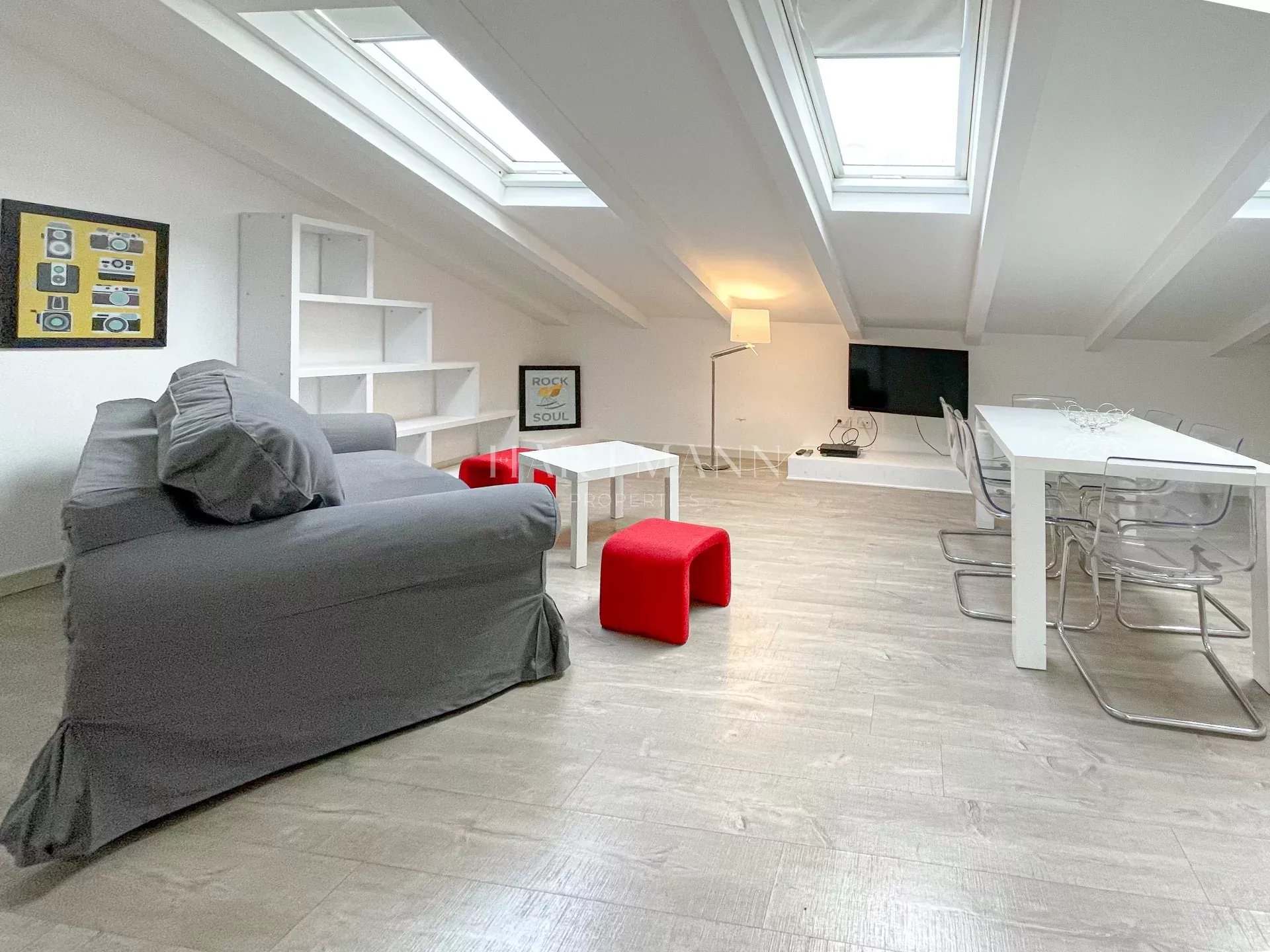 L’appartement comprend un vaste séjour avec cuisine américaine équipée, une chambre confortable ainsi qu’une salle de bains avec WC.