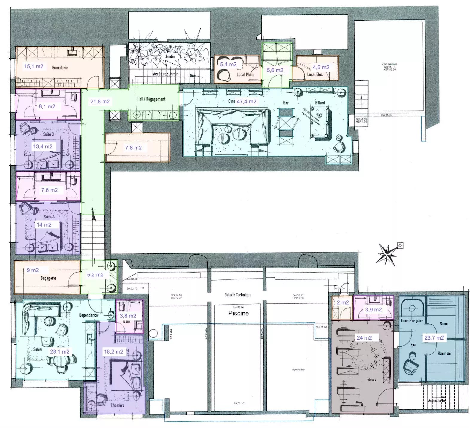 Une emprise au sol de 250 m² (villa) et 71 m² (annexe)