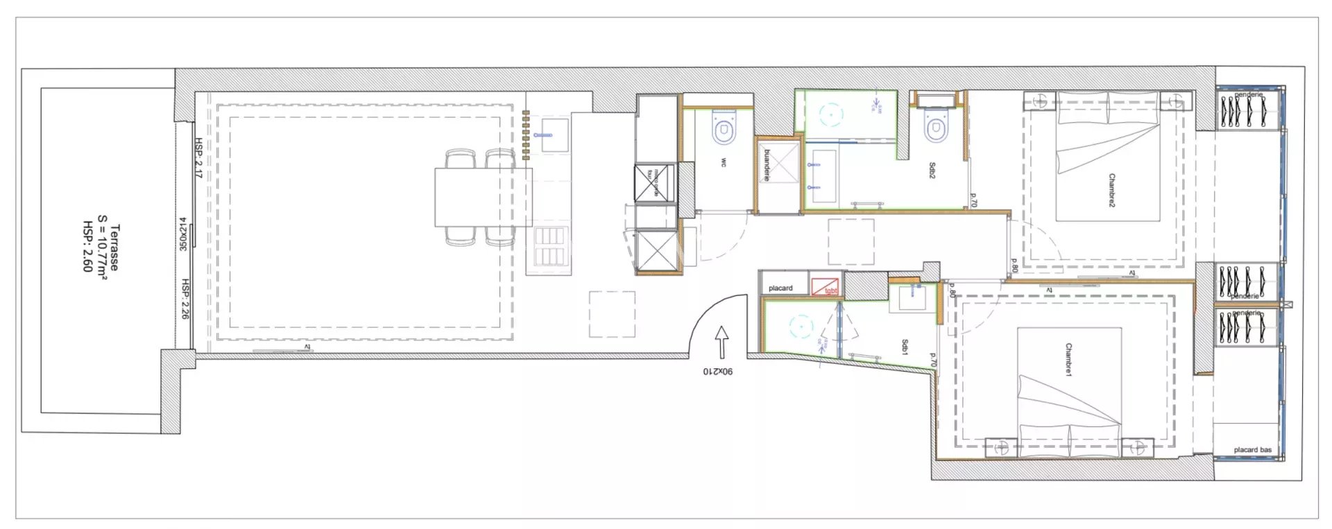 La partie nuit comprend deux chambres en suite, chacune avec sa salle de bain privative, alliant confort et élégance.