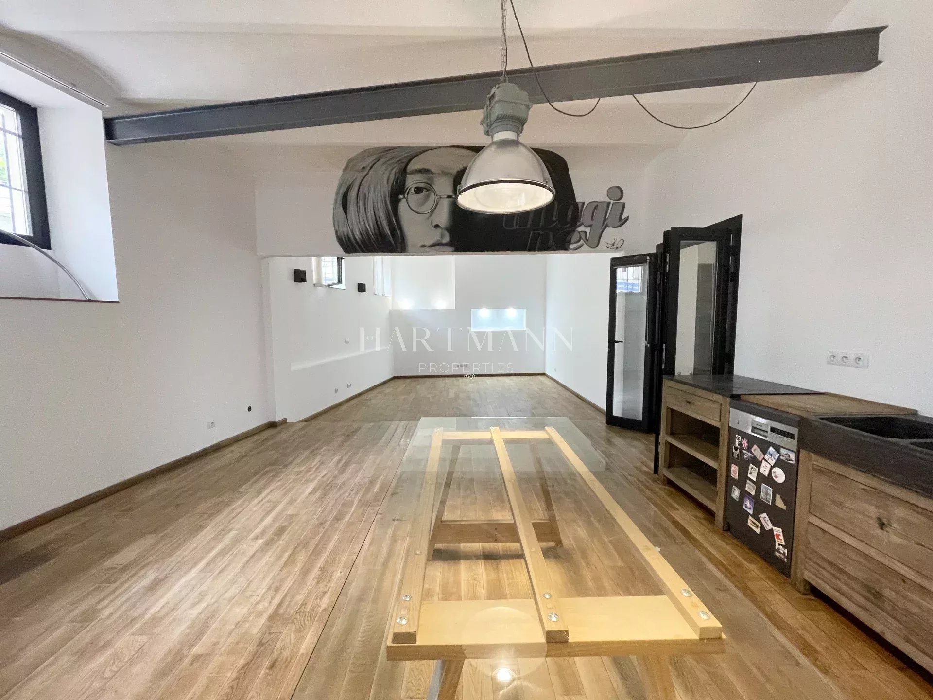 En plein centre de Cannes, à seulement 2 minutes à pied d’un parking, découvrez ce loft industriel de 3 pièces ( 2 chambres ) totalisant 120 m², en excellent état et offrant une double destination habitation + commerciale, idéale pour un usage mixte ou professionnel recevant du public (architectes, agence de pub, yoga, bien-être, showroom, activités créatives, bureaux…). Certaines photos sont non contractuelles.